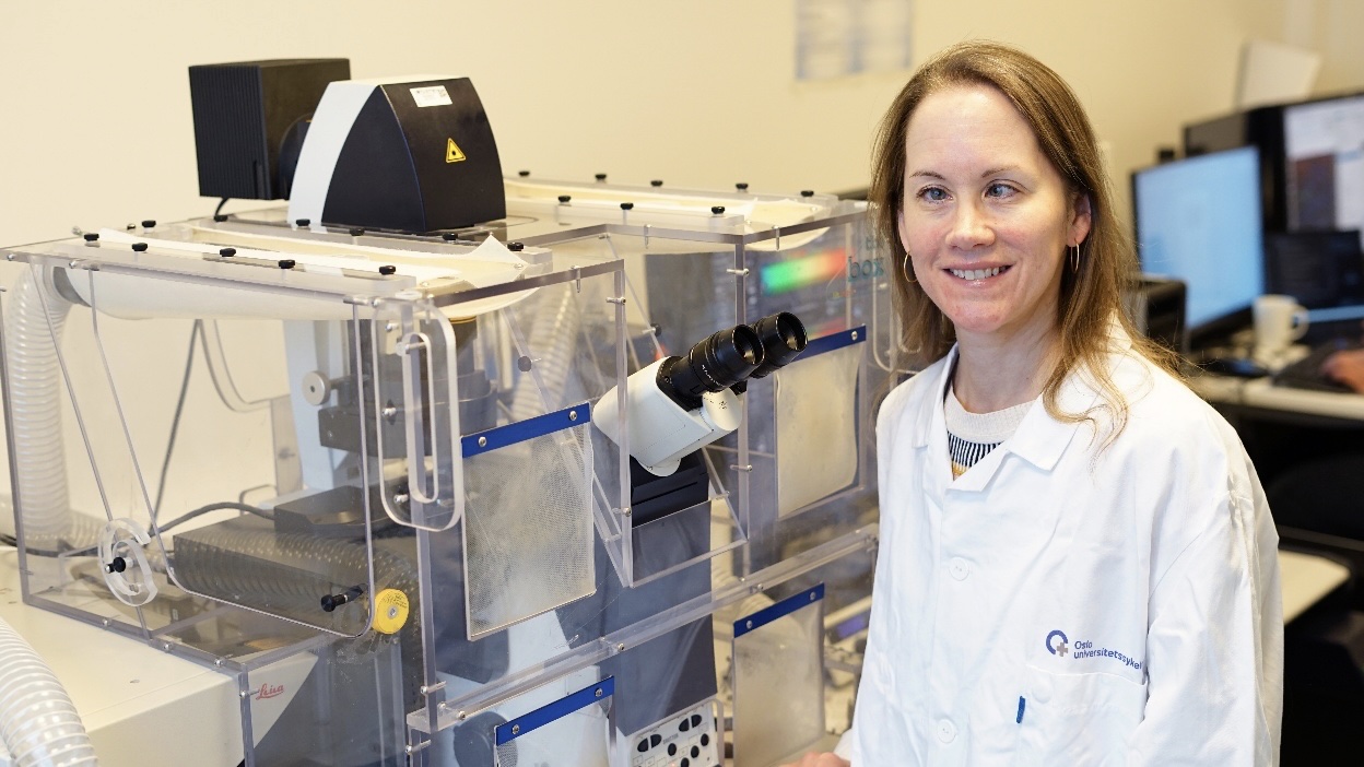 Emma Lång in the microscope lab. Photo: Guro Flor Lien